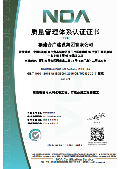 福建合廣建設(shè)集團有限公司,注冊資本5188萬元人民幣,公司位于廈門市同安區(qū)鳳山一里151-17號。本公司成立于2013年,公司具備市政公用工程、水利水電工程、房屋建筑工程、公路工程、園林綠化等多專業(yè)施工資質(zhì)。企業(yè)從業(yè)人員100多人,各類專業(yè)技術(shù)人員70多人,其中高級職稱8人,中級職稱40多人,一級建造師6人,二級建造師15多人。